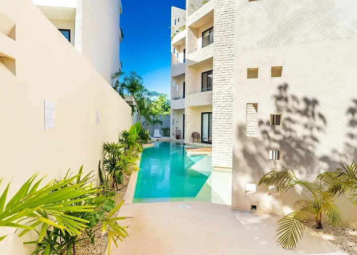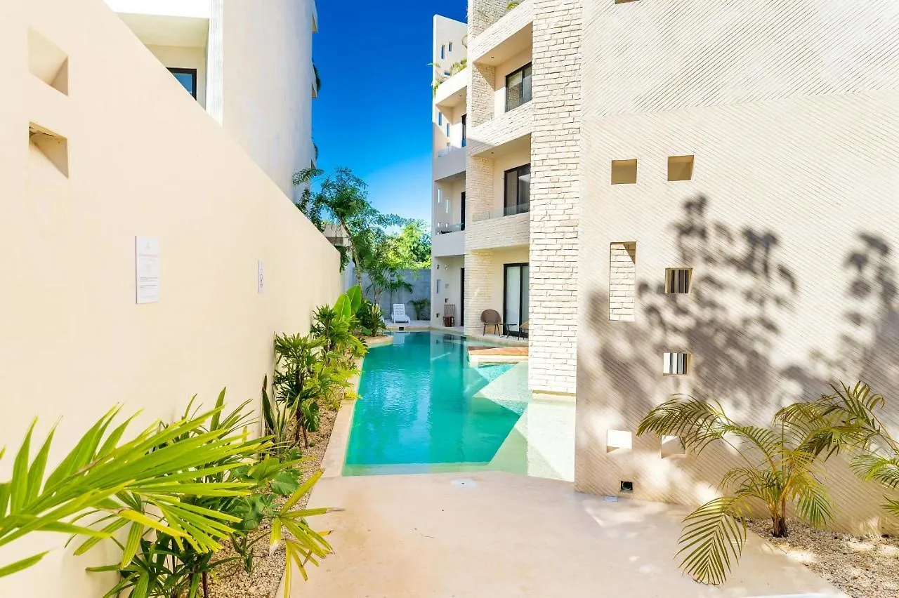Tulum City Apartments - Love Nest van 35 m^2 hebben een zwembad en een patio en liggen in de wijk La Veleta, op ongeveer 4 km van het Nationaal Park Tulum. Met een buitenzwembad garandeert het 1-slaapkamer appartement een meer ontspannen verblijf.